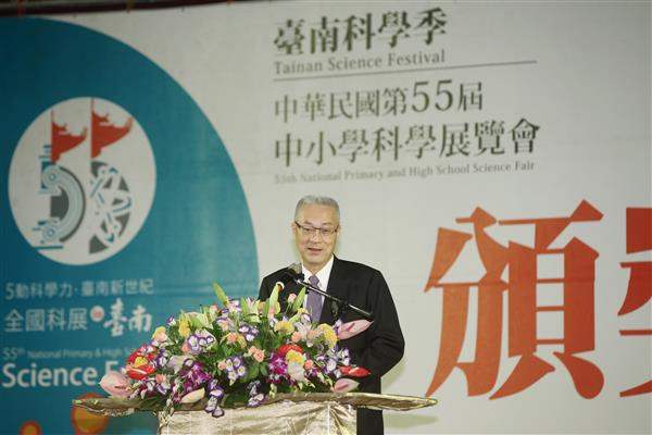 吳敦義副總統今(23)日上午赴臺南第一高級中學出席「第55屆中小學科學展覽會」頒獎典禮,除嘉勉所有參賽選手的傑出表現,也鼓勵渠等持續追求創新,帶動國家進步發展。
