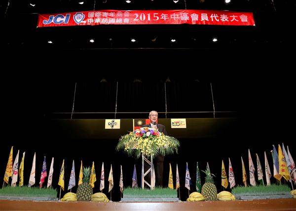 副總統致詞表示,「世界青年商會」自1915年成立迄今已屆滿100週年,而「國際青年商會中華民國總會」迄已成立63屆,除積極響應「世界青年商會」所舉辦的各項活動,亦秉持青年的熱情與責任,在臺灣從事各項文化藝術與社會公益等活動,例如主辦2012年的臺北燈會,以及成功爭取「2016國際青商亞太總會」在高雄舉辦,均顯示該總會實為中華民國重要的資產,更是推動文化藝術成長及促進社會和諧的進步力量。