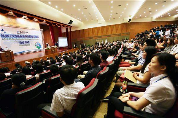 隨後,在總統親自見證下,義大醫院院長杜元坤頒授予34位外國學生醫師袍,綬袍學子們在來自聖露西亞的學生代表瑪瑞斯(Ava Maurice)帶領下,完成醫生宣誓儀式。