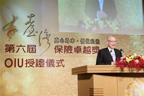 吳敦義副總統今(29)日上午出席第六屆臺灣保險卓越獎頒獎典禮暨「國際保險業務分公司」(OIU)授證儀式,期許臺灣保險業界共創卓越,進而立足臺灣,前進亞洲並邁向國際,為臺灣保險發展再展新猷。