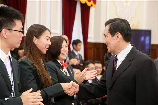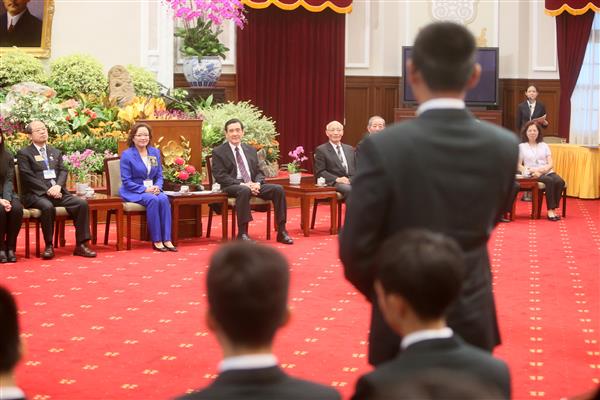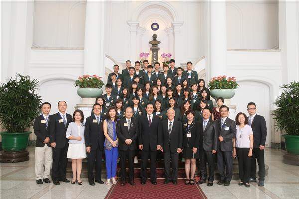馬英九總統今(3)日上午接見參加「國際扶輪青少年交換計畫」104年國際青少年交換學生,鼓勵年青學子修讀第二外語,瞭解其他國家的歷史文化,同時培養將心比心的國際觀,讓中華民國成為受人尊敬、令人感動的國家。