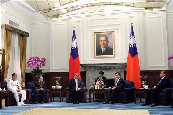 馬英九總統今(11)日上午接見宏都拉斯共和國國防部長雷耶斯(Samuel Armando Reyes Redon),除向訪賓說明臺宏各項互動與合作外,並盼持續加強雙方交流、邦誼永固。