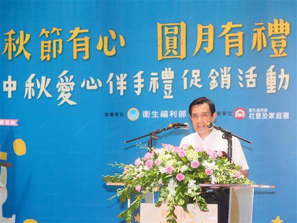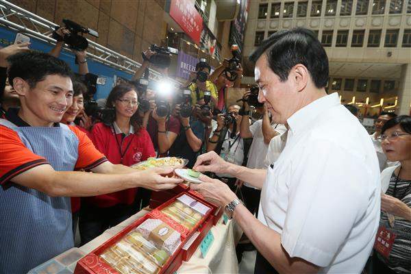 馬英九總統今(11)日上午前往臺北車站出席由衛生福利部舉辦的「秋節有心,圓月有禮」中秋愛心伴手禮促銷展售記者會,除現場試吃鳳梨酥等應景糕餅,並呼籲國人踴躍購買身心障礙機構生產與製作之秋節禮品,讓弱勢團體感受社會的溫暖與愛心。