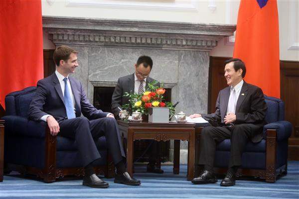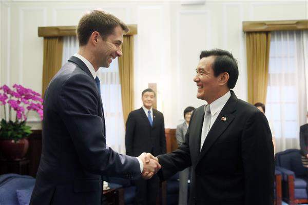 馬英九總統今(13)日上午接見美國聯邦參議員柯頓(Tom Cotton)訪華團,除誠摯歡迎訪賓來訪,並說明政府推動臺美關係及促進區域和平之努力與成果。