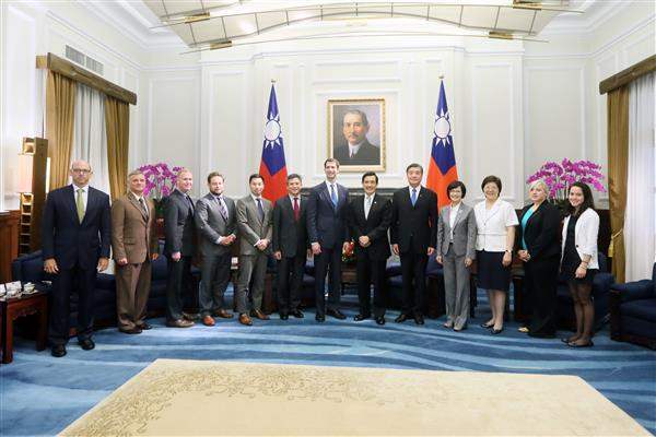 訪賓一行由「美國在臺協會」臺北辦事處處長梅健華(Kin W. Moy)陪同,前來總統府晉見總統,國家安全會議秘書長高華柱及外交部次長史亞平也在座。
