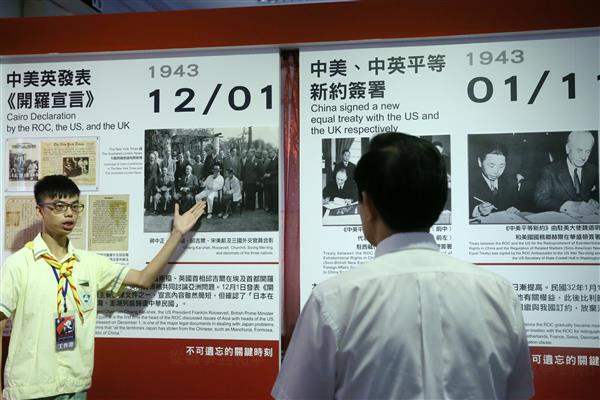 總統也提到,這次展覽也納入了民國32年12月1日發表的《開羅宣言》,該宣言確認了「日本在中國所竊取之領土,如東北四省、臺灣、澎湖列島歸還中華民國」,這段文字也被後來的《波茨坦公告》及《日本降書》吸收。而這幾項我國、美國與日本都承認的國際文件,也構成了中華民國光復臺灣的法律基礎,其中《日本降書》更被列入《美國法規大全》及《聯合國條約集》(United Nations Treaty Series),足證該份資料「是不折不扣的條約,是具有拘束力的」。