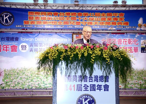 稍後,副總統在國際同濟總會舉辦的「第41屆全國年會暨第39屆全國十大農業專家、第8屆全國兒童守護天使表揚」典禮中,應邀致詞時表示,「國際同濟會」是全球性的志工社團,秉持民胞物與的精神在全球發光發熱,而同濟會臺灣總會成立以來,經過40多年的努力,全國共有16個分區、339個分會、23個大專同圓社、51個高中同青社及59個同幼社,會員人數達13,700人。
