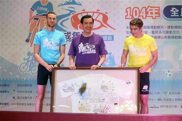 馬英九總統今(15)日下午出席「104年單車成年禮(千里環島)」大會師活動,除嘉勉參與活動的學員能不畏挑戰,努力達成目標,並說明政府推動單車運動之努力與成果。