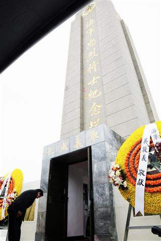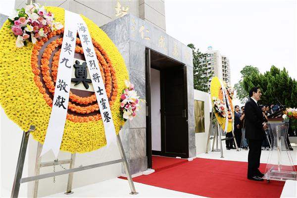 總統提到,自民國成立後,共有1,958位海軍官兵的忠魂名列塔上,其中包括許多捍衛海疆、奮勇抗敵的英雄,如民國27年在長江金口與日軍血戰,英勇成仁的中山軍艦艦長薩師俊,以及在民國38年5月淞滬保衛戰中壯烈殉國的永興軍艦艦長陸維源等。此外,紀念塔也銘刻在演習中殉職的國軍英雄,渠等忠於職守,戮力戰訓本務,以屏障海疆為己任的精神與愛國情操,將永存於每一代海軍人心中。