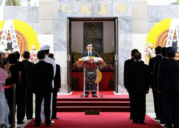 總統指出,「海軍忠烈將士紀念碑」原址為日本海軍的「東南石柱」碑,民國39年,我國海軍為紀念自1869年建軍以來,所有作戰及因公殉職的忠烈將士,海軍總司令上將桂永清特別主持「海軍忠烈將士紀念碑」建塔並安靈,奉祀的英靈包括前清甲申海戰,即1884年中法戰爭、甲午海戰,以及民國後的同江戰役(1937-1945年)、對日抗戰(1947-1949年)、戡亂戰爭(1949-1965年)、臺海戰役以及在演習中為國殉職的海軍官兵(1969-2012年)。