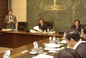 陳總統水扁先生今天下午在總統府第三次聽取「經濟發展諮詢委員會議決議事項推動情形簡報」,由行政院長張俊雄率同經發會五個分組的主管部會首長-包括經濟部長林信義、財政部長顏慶章、勞委會主委陳菊、經建會主委陳博志及陸委會主委蔡英文-分別向總統簡報。總統府秘書長游錫、行政院副院長賴英照、秘書長邱義仁也在場陪同。
