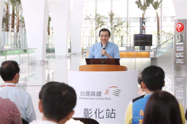 馬英九總統今(12)日上午赴彰化縣視察新近完工的高鐵彰化站,除說明政府推動軌道運輸的努力與成果,並期盼高鐵新設三站能夠如期通車,使往來旅客更加便利,也帶動地方繁榮。