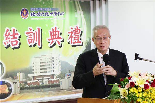 吳敦義副總統今(16)日下午赴人事行政總處地方行政研習行中心出席地方政務研究班第10期結訓典禮,除期勉結訓學員持續努力,為國家發展貢獻心力,也說明政府近年在兩岸關係、觀光發展及國際競爭力等方面的努力與成果。