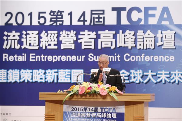 吳敦義副總統今(17)日上午出席由「臺灣連鎖暨加盟協會」舉辦的「第14屆流通經營者高峰論壇」,期勉全體連鎖暨加盟經營者朝注重品質、提升品味及打造品牌之目標邁進,創造良好經營績效,讓臺灣服務業更具國際競爭力。