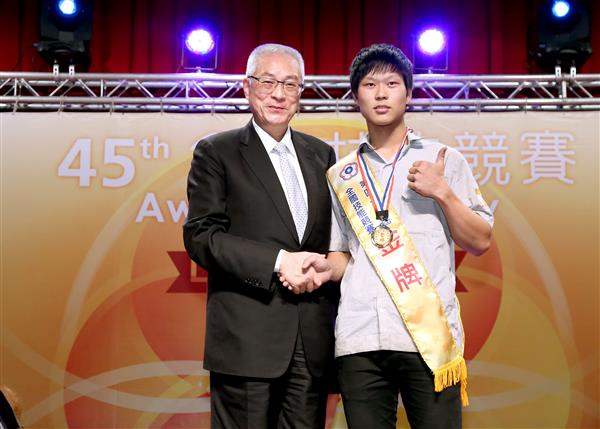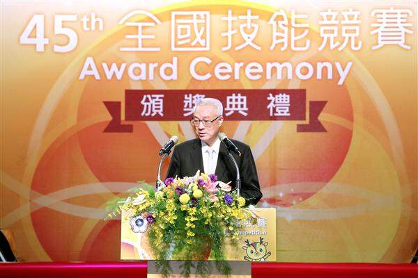 吳敦義副總統今(19)日下午前往臺中市出席勞動部主辦之「第45屆全國技能競賽頒獎暨閉幕典禮」,除恭喜獲獎選手,並期許我技職教育持續在國際發光發熱、再創高峰。