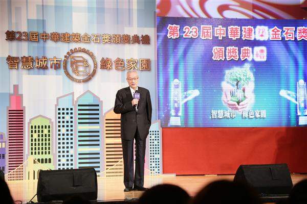 吳敦義副總統今(21)日晚間赴中油大樓國光廳出席第23屆中華建築金石獎頒獎典禮,除恭賀各得獎者,並期盼各界與政府共同努力,建構優良的居住環境,讓居住者及使用者更為方便舒適。