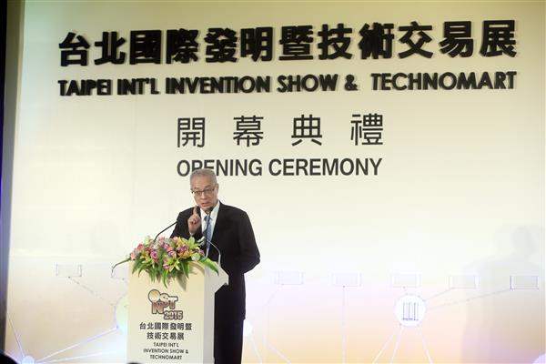 吳敦義副總統今(1)日下午出席「2015年臺北國際發明暨技術交易展」開幕典禮,代表政府歡迎來自海內外的發明人與企業,預祝活動圓滿成功,並期盼將智慧資產商品化,有益於國計民生。
