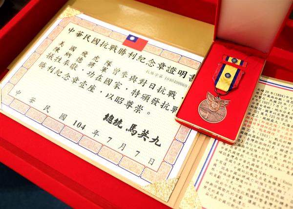 馬英九總統今(7)日下午接見美國飛虎隊陳納德將軍遺孀陳香梅,緬懷陳納德將軍協助我國對日抗戰之重大貢獻,並頒贈抗戰勝利紀念章,由陳香梅女士代表接受。