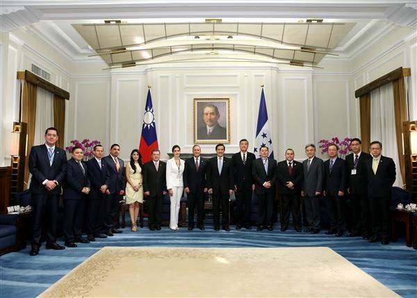 馬英九總統今(9)日上午接見宏都拉斯共和國副總統阿瓦雷茲(Ricardo Antonio Álvarez Arias)伉儷訪華團,除感謝訪賓來華祝賀我國國慶,亦盼持續深化兩國合作關係。