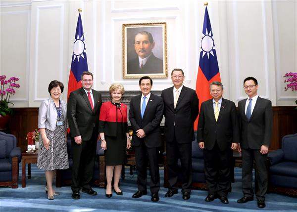 談及臺美經貿關係,總統說,我國在去年已超越印度及沙烏地阿拉伯,成為美國第10大貿易夥伴,美國也超越日本,再次成為我國第2大貿易夥伴。臺美《貿易暨投資架構協定》(TIFA)從2013年3月恢復諮商以來,包括2013年3月由馬倫提斯(Demetrios Marantis)大使訪華時舉行的第7屆TIFA會議,去年我國代表團訪美時會見柯特勒(Wendy Cutler)副貿易代表的第8屆TIFA會議;加上本(10)月1日,我國邀請何禮曼(Robert Holleyman)副貿易代表訪華參加的第9屆TIFA會議,臺美雙方已舉行過3次TIFA會議;此外,《跨太平洋夥伴協定》(TPP)經過幾次密集磋商後,終於在本(10)月5日完成實質談判,「也許我們有機會進入第二輪貿易談判」。