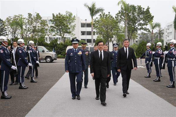 馬英九總統今(12)日上午前往岡山空軍官校體育館岀席殉職AT-3教練機飛行員王勁鈞中校、黃俊榮上尉聯合公祭典禮。