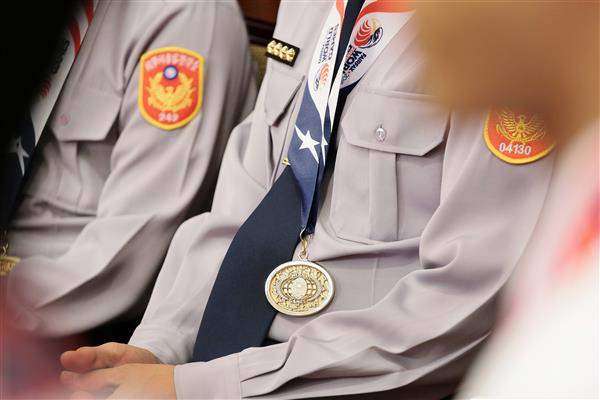 總統致詞時指出,本屆「世界警察消防運動會」於今(104)年6月26日至7月5日在美國維吉尼亞州的費爾法克斯郡(Fairfax County,Virginia)舉行,總計有來自世界各地68個國家、共1萬2千多位選手同場競技。我國代表隊雖然僅有39名選手,但展現出絕佳體能與精湛技術,在柔道、跆拳道、射擊、網球、羽毛球、桌球、高爾夫球及田徑等項目,共計獲得53面金牌、27面銀牌及29面銅牌,不論是金牌數或總得牌數皆創下歷屆最佳紀錄。尤其在柔道、跆拳道及射擊等3項主要警技項目中,我國共計獲得33金、16銀與15銅,不僅顯示我國警察與消防弟兄戰力高超,也證明警消執法人員平時的體能訓練相當紮實。