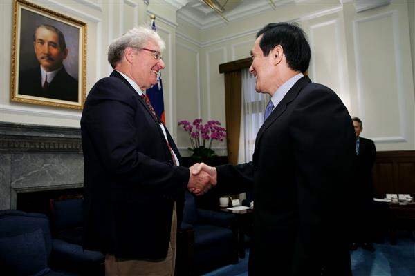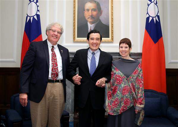 馬英九總統今(16)日下午接見以色列台拉維夫大學動物學系勒杉(Yossi Leshem)教授伉儷,除誠摯歡迎訪賓來華,並盼渠能分享鳥擊防治與有害生物綜合管理之學識及經驗,以促進我國農業永續發展。