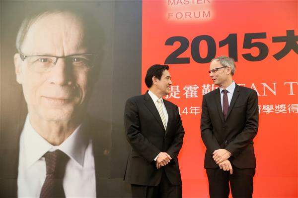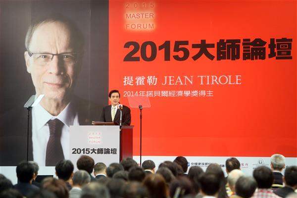 總統致詞表示,經濟日報已經連續7年舉辦「諾貝爾大師論壇」,不僅建立國內各界與國際經濟大師請益與交流的平臺,也提升臺灣的國際視野;而此次論壇的主要貴賓提霍勒(Jean Tirole)教授,投身經濟學研究多年,著作等身,擁有超過200篇的研究論文與11本著作,且許多都成為經典,實係當代最具影響力的經濟學者之一。