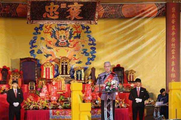 副總統抵達會場後,首先參與義民節祭典並擔任主祭官。隨後於致詞時表示,「義民祭」是客家傳統百年祭典,代表的是客家人感念義民爺保家衛鄉「褒忠」精神,也代表敬天念祖的仁義精神,從迎神遶境、挑擔奉飯中,感懷當年先民胼手胝足為後代立下厚實基業。因此,「義民祭」完全展現客家本色與客家族群的高度凝聚力。