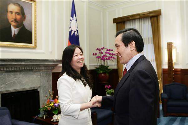 訪賓一行由「美國僑學界超黨派聯誼會」召集人童惠珍率領,前來總統府晉見總統,立法委員詹凱臣及國安會副秘書長高振群也在座。