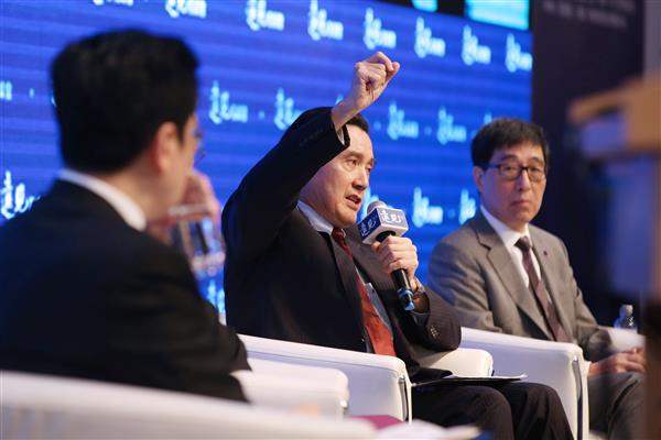 總統專題演講後,與遠見雜誌董事長高希均、新加坡新躍大學新躍中華學術中心主任郭振羽、創新工場董事長李開復及香港城市大學校長郭位等人進行座談,就大中華文化圈、創新與創業及人才培育與教育等議題交換意見。