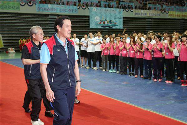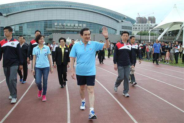 馬英九總統今(31)日上午前往新莊體育館出席「104年中央機關員工運動會」聯合開幕典禮,並與行政院長毛治國等首長一同參加400公尺競走比賽,以實際行動勉勵國人養成規律的運動習慣。