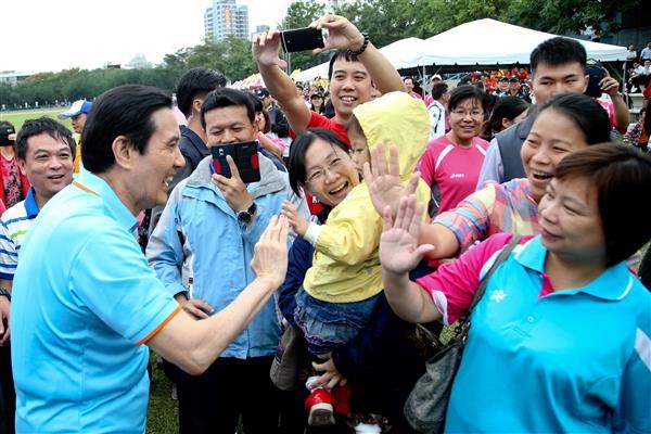 總統說,他在擔任臺北市長期間,就開始在全市12個行政區內設置市民運動中心,任內完成6座,並啟用其中4座,剩餘6座由前市長郝龍斌接續完成,目前每月使用率已高達1百多萬人次。