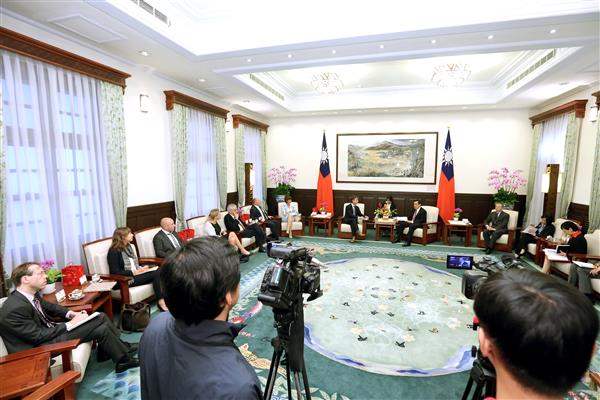 馬英九總統今(3)日下午接見比利時國會議員訪華團,除說明我國與比利時的各項交流與關係,並盼臺歐盟能盡快洽簽《雙邊投資協議》(BIA),為彼此經貿關係再添動能。