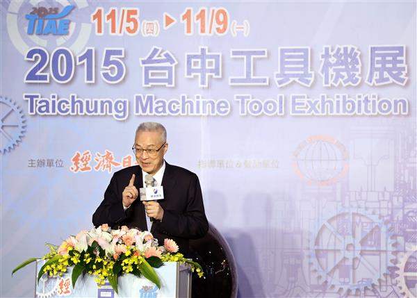 吳敦義副總統今(5)日下午前往台中國際會展中心,代表馬總統出席由經濟日報所舉辦的「2015臺中工具機展」開幕典禮,祝賀展出圓滿成功、業績長紅,並期許業者能在技術上不斷創新與領先,成為國內及全球產業鏈的「隱形冠軍」。
