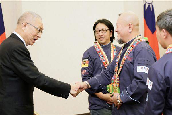 吳敦義副總統今(5)日上午接見「2015世博會美食與時尚世界大賽」我國參賽代表,肯定榮獲首屆「世界廚神」的封號,實為「臺灣之光」。