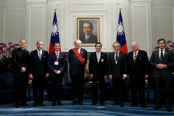 馬英九總統今(5)日晚間在總統府頒授馬爾他騎士團元首費斯汀大教長「采玉大勳章」暨受贈「馬爾他騎士團最高等級功績領綬勳章」,表彰兩位元首對促進雙方邦誼的卓越貢獻。