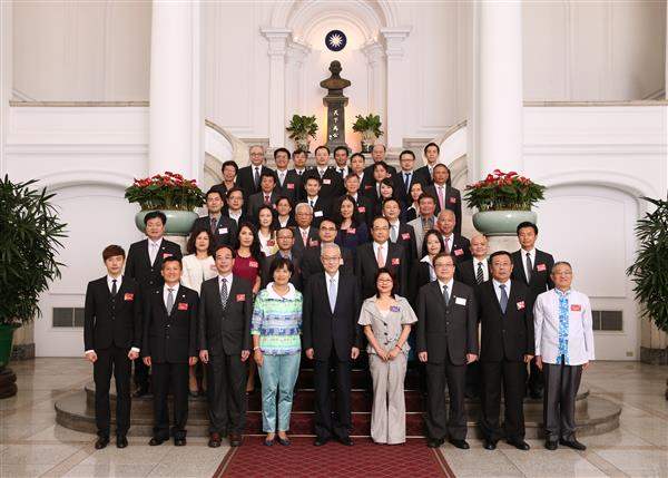 訪賓一行55餘人由臺灣永續關懷協會名譽理事長朱鳳芝與執行長馮智能陪同,前來總統拜會副總統,內政部次長林慈玲亦在座。