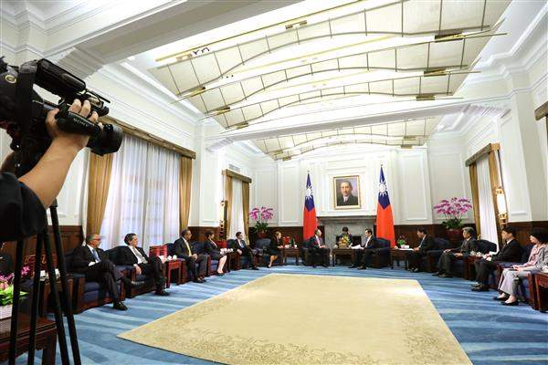 訪賓一行由多明尼加共和國駐華大使阿布爾格格(Rafaela Alburquerque De Gonzalez)及外交部次長柯森耀陪同,前來總統府晉見總統,國家安全會議副秘書長劉大年也在座。