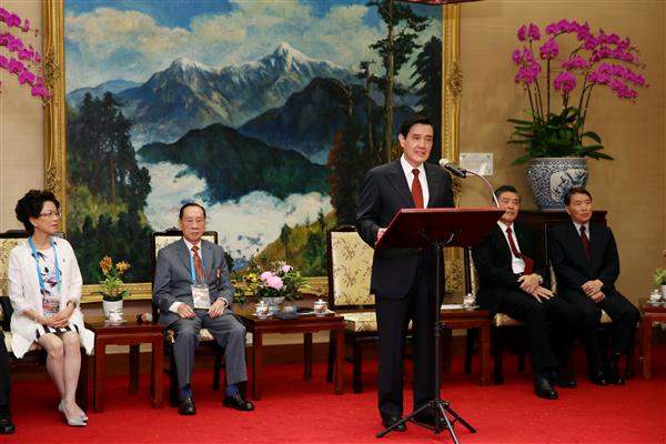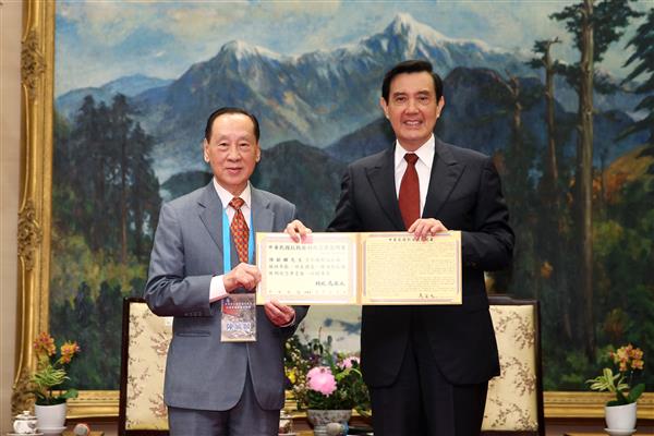 馬英九總統今(11)日上午接見南洋華僑機工服務團代表及抗戰華僑回國訪問團,並頒贈第1萬枚抗戰勝利紀念章予前陸軍少校閔前聖,表達政府及人民的謝意與敬意 。