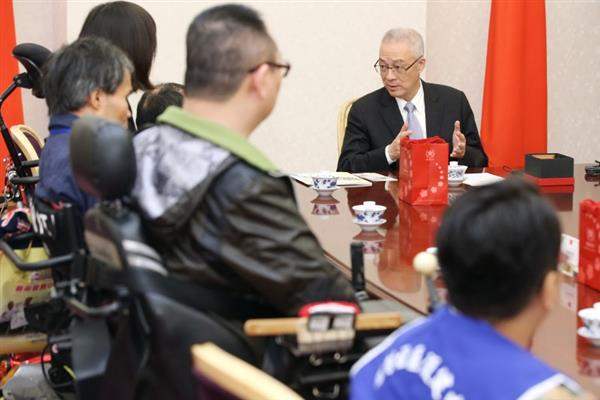 吳敦義副總統今(13)日下午接見「第12屆身心障礙者藝術顛峰創作聯展」參展者,期盼每一位身心障礙朋友都能克服自身的障礙,以樂觀進取的態度面對各種挑戰,更期望社會大眾能包容接納身心障礙者,發揮愛心、耐心與熱心,幫助更多身心障礙朋友們快樂生活,實現人生價值與理想。