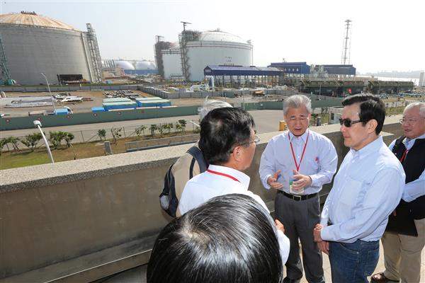 總統於視察臺中液化天然氣廠時,分別聽取經濟部長鄧振中、環保署長魏國彥及臺灣中油公司董事長林聖忠針對我國目前能源情勢、溫室氣體減量承諾,以及天然氣營運現況的簡報。媒體並就中國大陸霾害對臺灣之影響、我國碳交易制度及政府用電量規畫等議題提問,由相關部會首長回應。