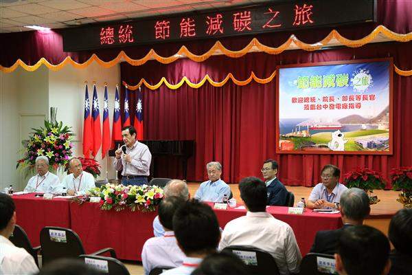 馬英九總統「節能減碳之旅」今(25)天繼續展開第二天行程。總統上午首先前往「臺電公司明潭發電廠」及「台積公司中科15廠」訪視,下午則視察「高美濕地周邊風力發電機組」及「臺電公司臺中發電廠」。