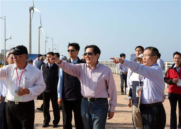 下午,總統轉赴高美濕地及「臺電公司臺中發電廠」參訪,實際瞭解我國風力及火力之發電現況與願景。