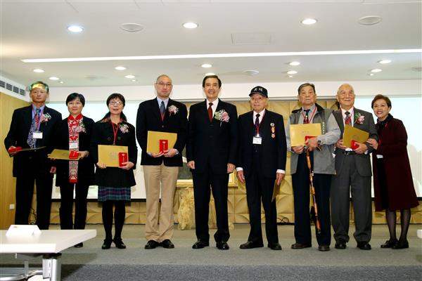 隨後,總統親自頒發「抗戰勝利紀念章」及紀念證書予孫立人將軍及「新一軍」的抗戰老兵代表等8人。