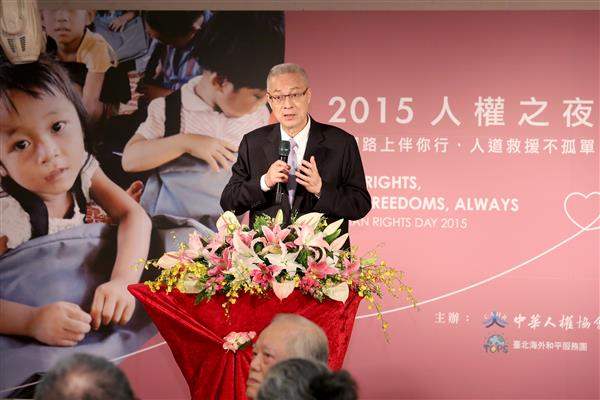 吳敦義副總統今(4)日晚間出席由「社團法人中華人權協會」所舉辦的「2015人權之夜」,肯定該協會多年來的努力與貢獻,並期盼繼續為臺灣乃至全球的人權保障做出更大貢獻。