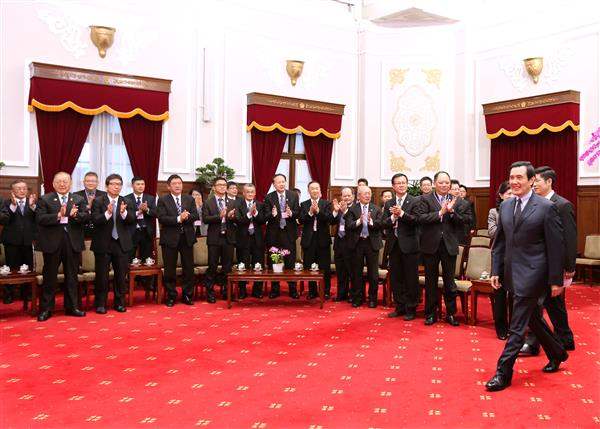 馬英九總統今(9)日上午接見「臺北市商業會」暨臺北市各商業同業公會理事長一行,除肯定該會對臺灣經濟發展貢獻良多,並說明政府提振景氣措施、促進產業升級及落實居住正義的努力與展望。