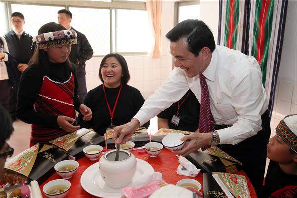 談及政府對於親愛部落的協助,總統說,在社區老人關懷與照護方面,原住民族委員會補助社區成立「親愛文化健康站」,關懷部落中的長輩,提供老人送餐、關懷訪視、電話問安及健康促進活動等服務,累積補助經費約新臺幣145萬元。