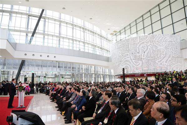總統也分享心中的感謝、感動及感慨。感謝的是行政院在民國99年時完成第二次修正計畫後,將硬體工程委由內政部營建署負責,並由我國優秀建築師姚仁喜先生在參考中國書法的濃墨、飛白及渲染等三種筆觸後,設計建築物外觀,在多方配合下順利如期完工;此外,令人感動的是,從計畫核定迄今,這15年間行政與工程團隊均相當有信心,「沒有一絲一豪的猶豫或懈怠」,奮鬥的精神殊值肯定。總統也感慨興建工程耗費了15年,「真的可以縮短」,希望未來編制內未包括工程單位的行政機關在推動重大國家建設時,應先研議如何在規劃與設計階段時獲得相關支援,避免因不熟悉工程知識或法規而造成計畫的延宕,「這是我們最需要加以注意的部分」。