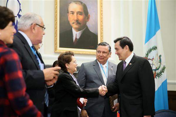 談及臺瓜關係,總統說,我國與瓜地馬拉從1933年建交迄今已逾80年,兩國高層互訪頻繁且互動良好。在他擔任臺北市長期間,曾在2000年訪問瓜國,而後在2009年時則以總統身分率團前往。總統提到,當時適逢瓜國國會慶祝行憲24週年紀念日,他受邀在國會發表演說;我國訪團成員「朱宗慶打擊樂團」也在瓜國國家劇院演出,全場觀眾報以熱烈掌聲,瓜國人民對我國的友善與熱情令人動容;此外,今(2015)年9月,在得知傅恩德斯副總統就任時,我吳敦義副總統立即透過駐館致送祝賀信函;瓜國第一夫人法亞妮(Ana Violeta Fagiani Enríquez de Maldonado)也在11月期間率團訪華,凡此充分顯示兩國高層間的深厚友誼。